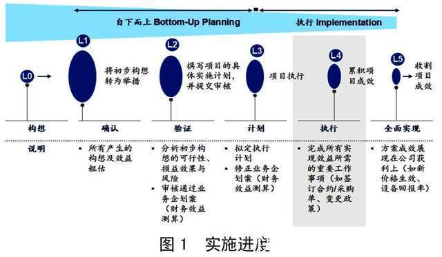 验证 L2 阶段:撰写项目的具体实施计划阶段,分析初步构想的可行性、损益效果与风险,审核通过财务效益测算。通过举措卡片模板填写举措描述、效益汇总、举措财务效益衡量、举措运营改善指标、举措假设、执行与里程碑。